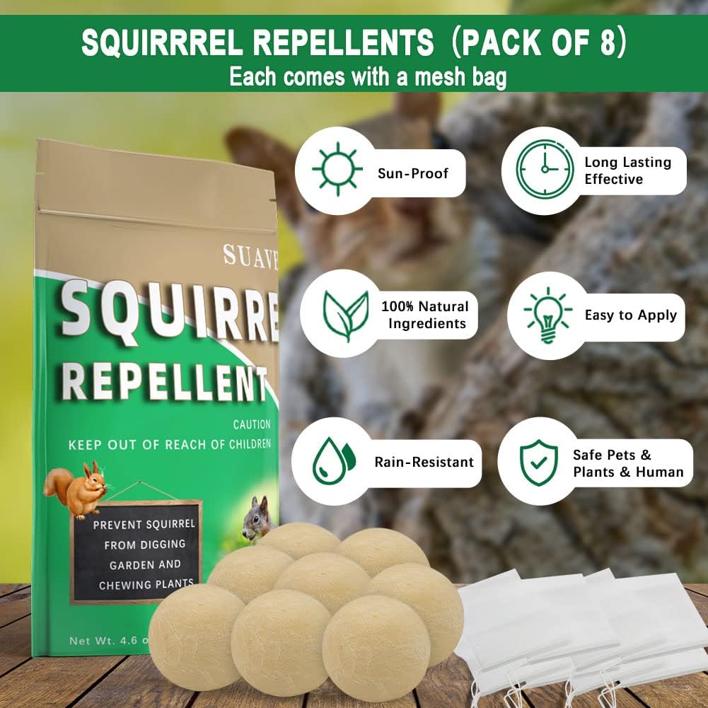 - LONG LASTING EFFECTIVE – The squirrel repellents deliver long lasting scent, cause mild irritation to squirrels when they close to the repellent, naturally volatilize and keep getting smaller, last about 60-90 days.
